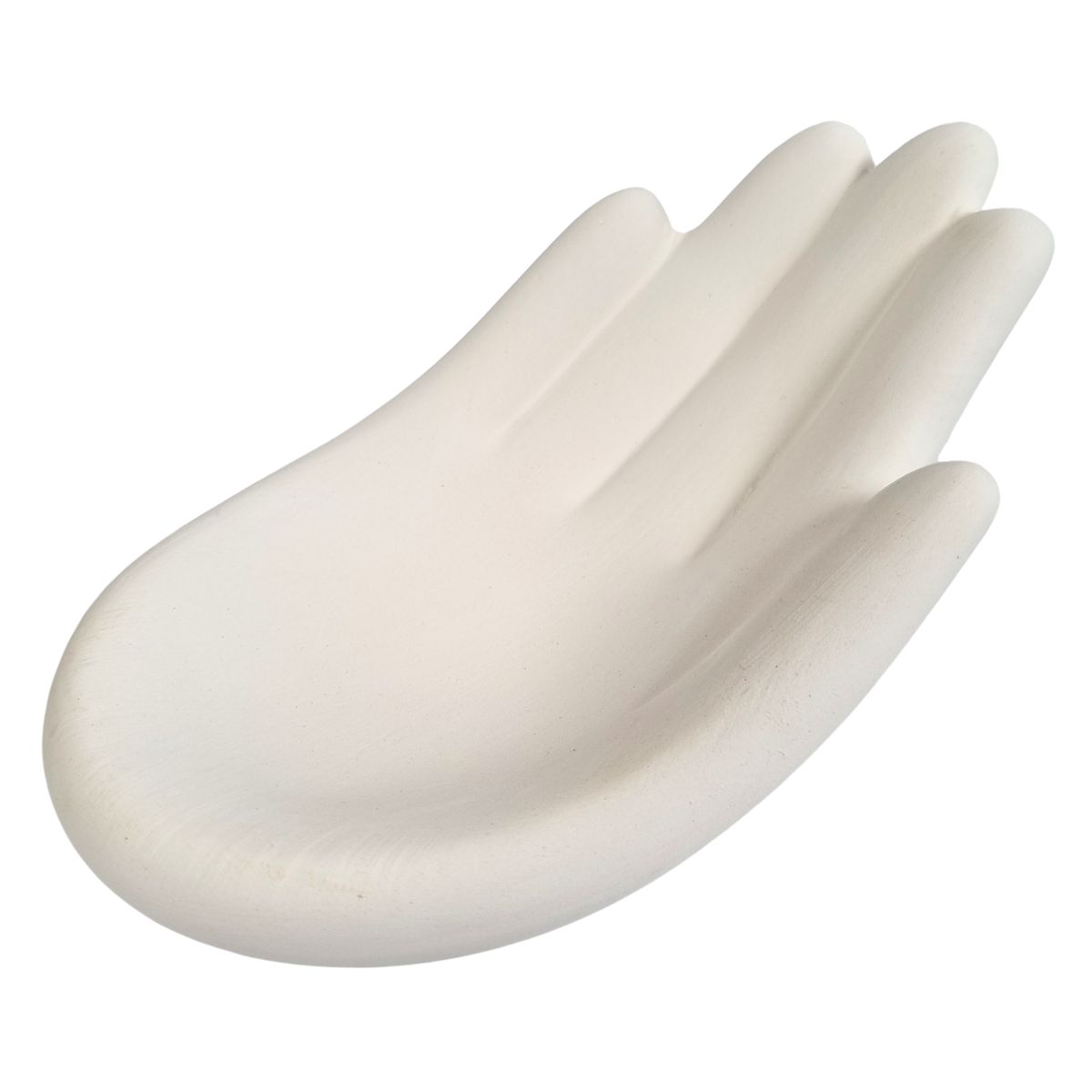 Naczynie biskwitowe w kształcie ręki, gotowe do zdobienia i drugiego wypału.