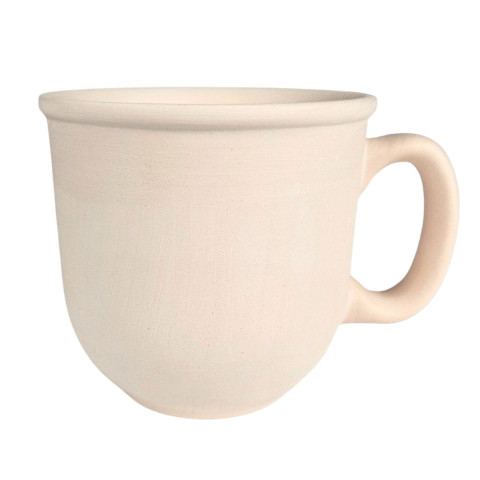 Duży biskwitowy kubek z uchem, gotowy do zdobienia i drugiego wypału.