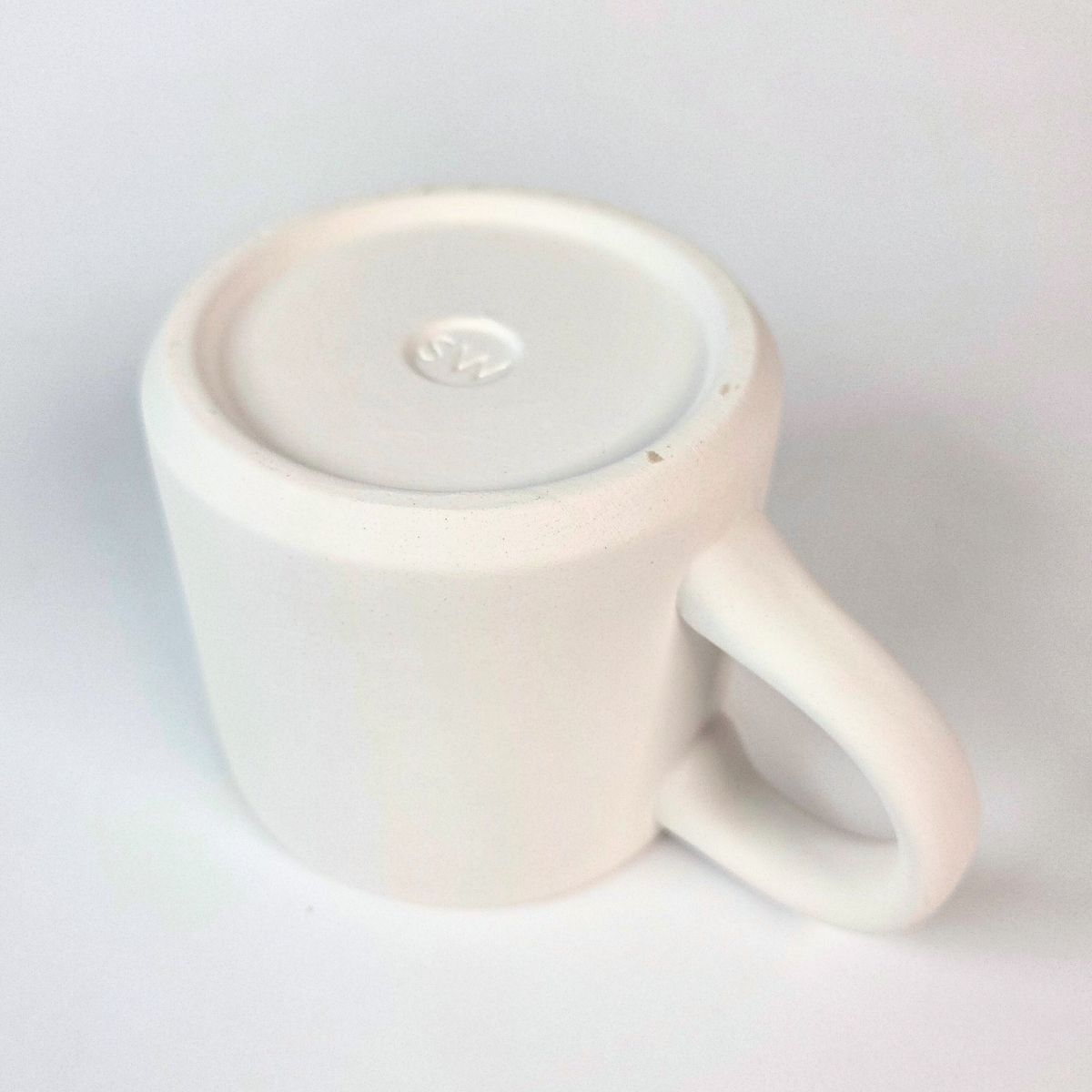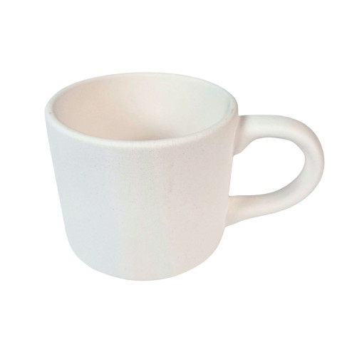 Biskwitowy, prosty kubek z uchem, gotowy do zdobienia i drugiego wypału.