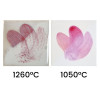 Na zdjęciu pokazano tą samą farbę w zależności od temperatury wypału.