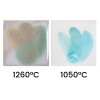 Na zdjęciu pokazano tą samą farbę w zależności od temperatury wypału.
