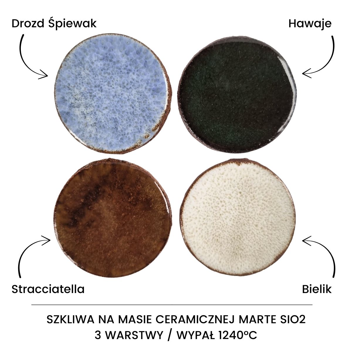 Szkliwa dzielimy na trzy grupy: płynące, średnio-płynące i niepłynące, co ułatwi Ci wybór w zależności od tego, czy zależy Ci na dekoracyjnym efekcie spływania, czy na pełnej kontroli nad wzorami i detalami.