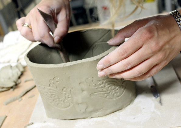 - zdobienie ceramiki (ryt wklęsły, wypukły, płaskorzeźba, ażur). Użycie kolorowych mas.
