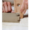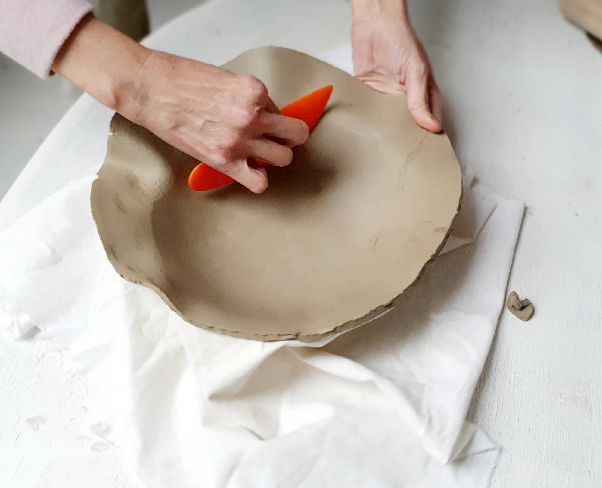 - masy ceramiczne (najlepiej różne, tak aby dostrzec różnicę w konstrukcji- z małym/dużym szamotem, bez szamotu, biała/czerwona/czarna)