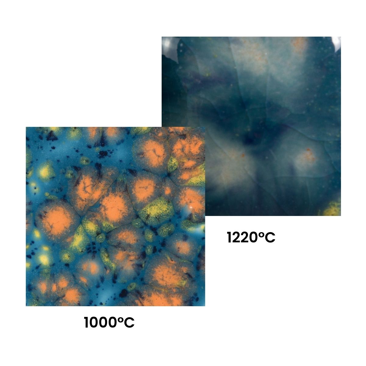 Kolory widoczne na ekranie monitora mogą różnić się od rzeczywistych kolorów szkliwa, ponieważ na odbiór koloru wpływ ma wiele czynników takich jak: rodzaj szkliwionego podłoża, technika szkliwienia, środowisko wypału, oświetlenie, ustawienia monitora.