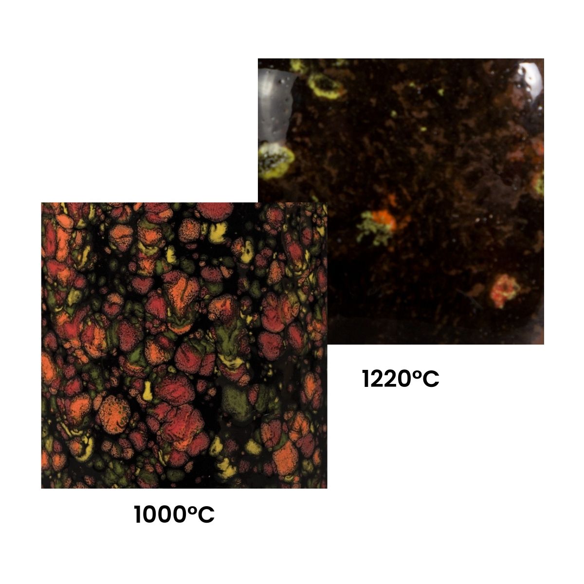Kolory widoczne na ekranie monitora mogą różnić się od rzeczywistych kolorów szkliwa, ponieważ na odbiór koloru wpływ ma wiele czynników takich jak: rodzaj szkliwionego podłoża, technika szkliwienia, środowisko wypału, oświetlenie, ustawienia monitora.