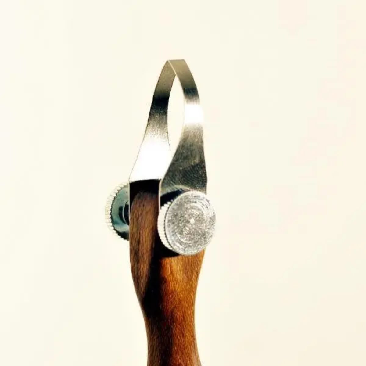 Uchwyt jest wykonany ręcznie z drewna i zaimpregnowany naturalnym olejem. Dzięki wielu próbom udało nam się uzyskać ergonomiczny kształt, dzięki któremu uchwyt lepiej leży zarówno w dużych, jak i małych dłoniach.