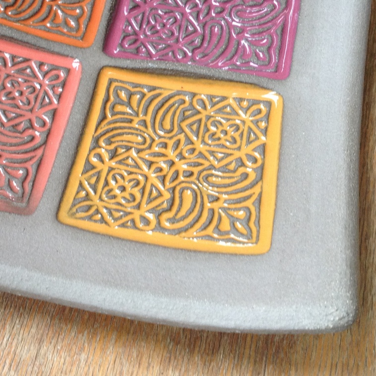 Powierzchnie z teksturami, takie jak reliefy czy płaskorzeźby, gdzie subtelne spływanie szkliwa podkreśla głębię