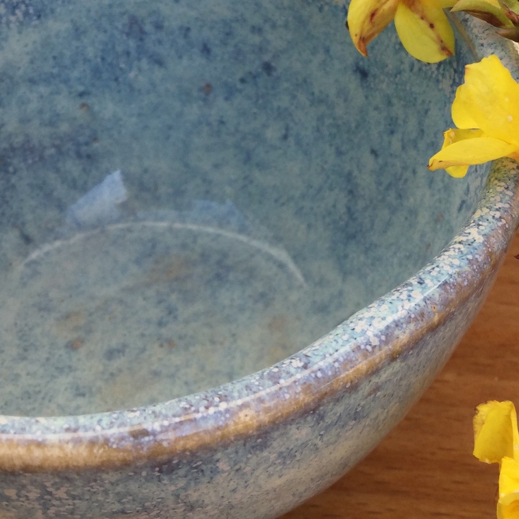 1280°C: jedwabiście matowe, kremowa, przeplatane częściowo dużymi jasnoniebieskimi obszarami, gra kolorów i połysk nadają szkliwu bardzo piękną, żywą powierzchnię;
