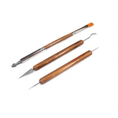 - narzędzia dwustronne. - ilość w opakowaniu: 3 sztuki; - długość: 8cm, 6 cm i 4cm; - narzędzia idealne do prac modelarskich, zdobniczych i graficznych.